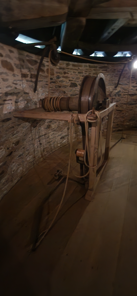 L’ascenseur pour monter les charges lourdes est très astucieux car même un enfant de 9 ans peut faire grimper les sacs de blé du rez-de-chaussée au 2ème étage.