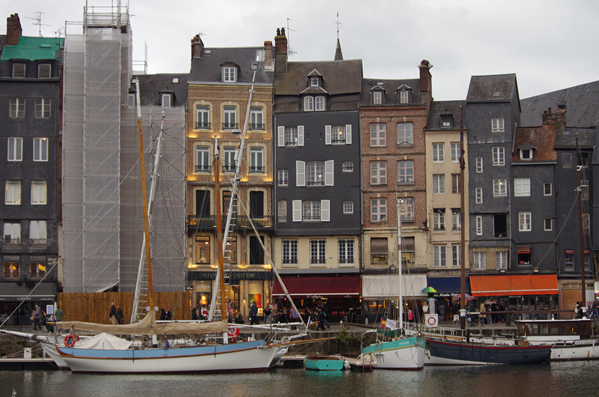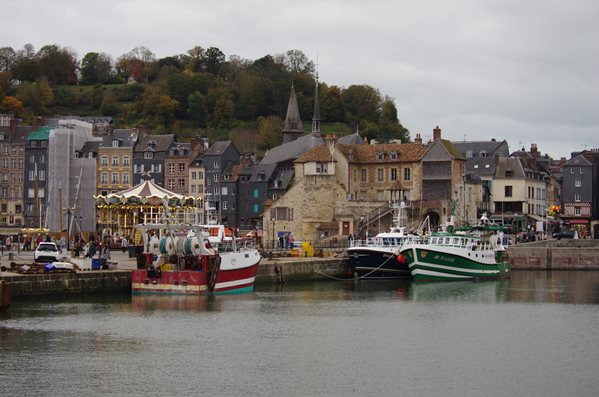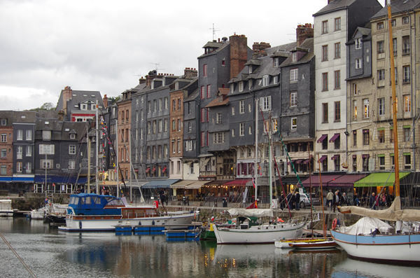 Arrivé sur Honfleur après 2h de route, nous stationnons sur un parking payant (coût 14 euros pour 24 heures) réservé aux vans, fourgons, camping-cars. Il s’agit d’un parking sans équipement sur les quais juste à côté du parking équipé. L’endroit se situe à moins de 10 minutes du centre de la ville.
