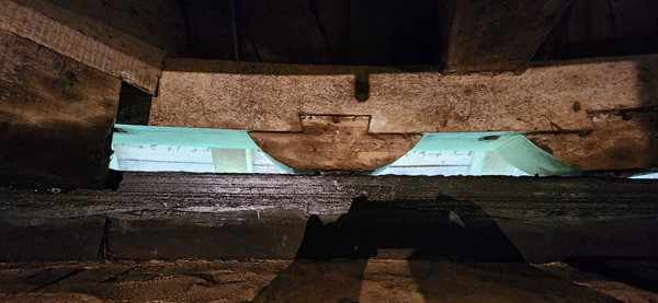 Le rail qui permet de fermer tourner le toit du moulin à vent