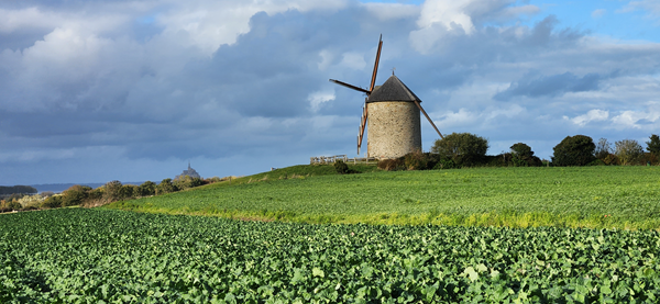 Le Mont-Saint-Michel visible depuis le moulin à vent de Moidrey